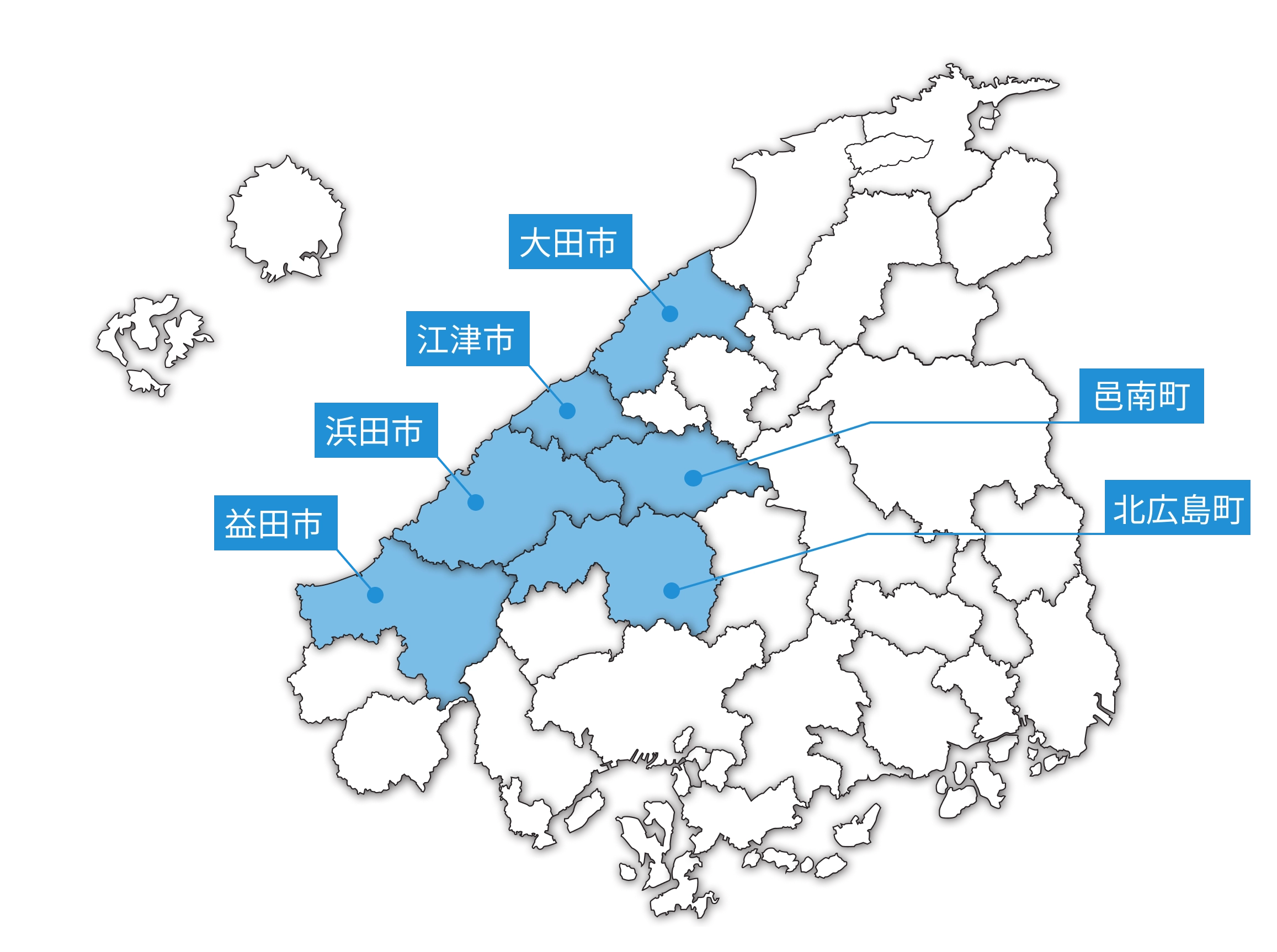 浜田市・邑南町・江津市・大田市・益田市・北広島町